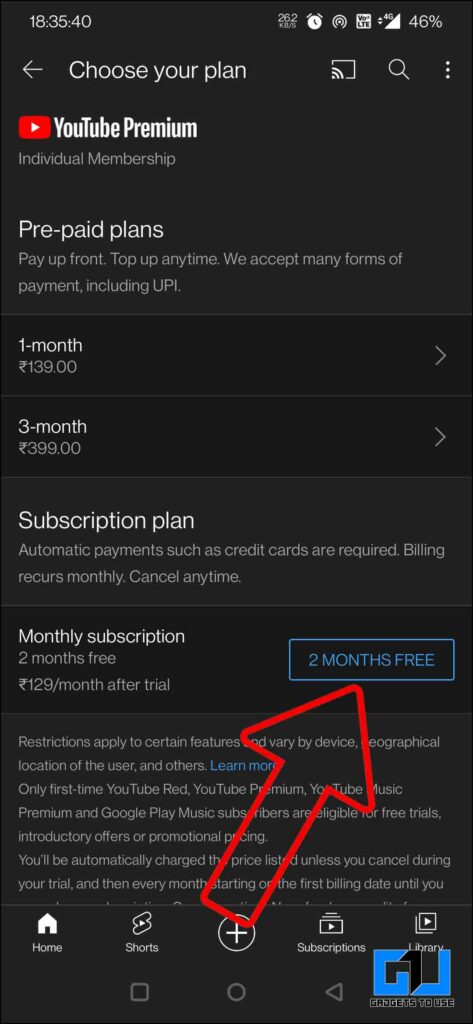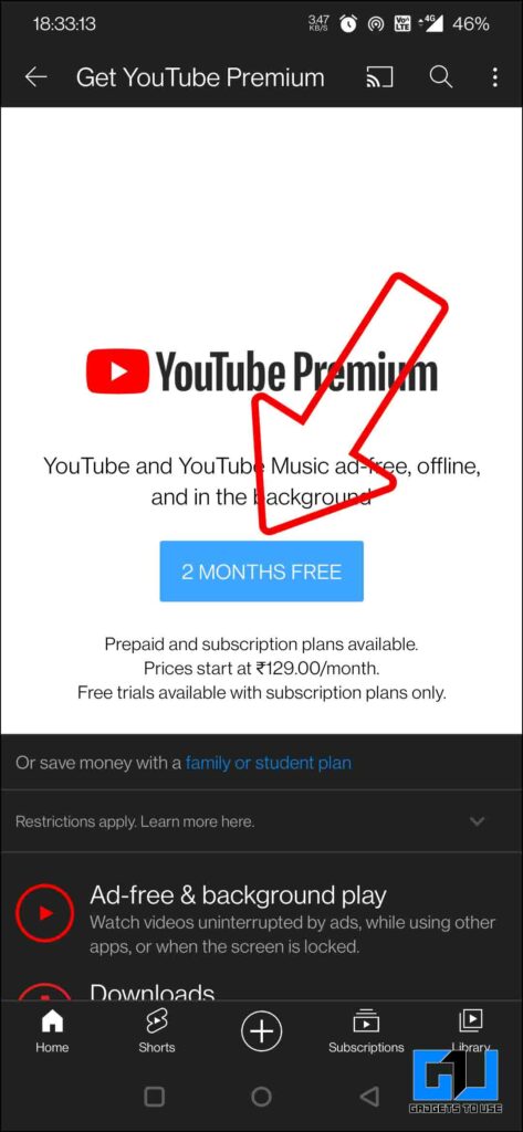 This is how you can get 2 months of YouTube Premium for free, on your phone, or laptop, computer. Stay tuned for more such tips and tricks.You can also follow us for instant tech news at Google News or for tips and tricks, smartphones & gadgets reviews, join GadgetsToUse Telegram Group or for the latest review videos subscribe GadgetsToUse Youtube Channel.