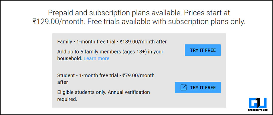 - Student Plan (Monthly) – This plan is for students and costs Rs. 79/month. However, the student needs to annually verify his/her details.