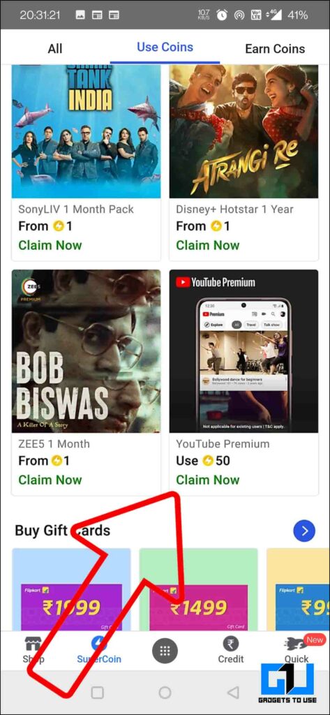 - Scroll down, and click on YouTube Premium which will be available in exchange for 50 coins.
